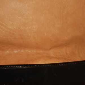 Fendi Nappa and patent Leather B bag, tan and black. This is a classic work or travel bag. In excellent used condition.