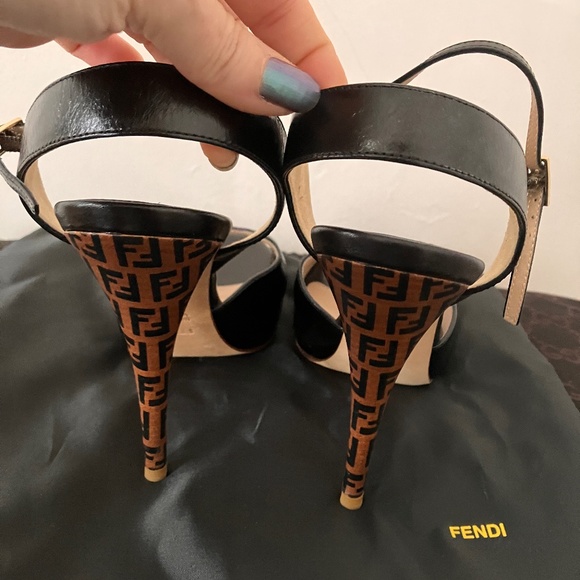 Fendi Black Leather PeepToe Slingbacks with Logo heels
