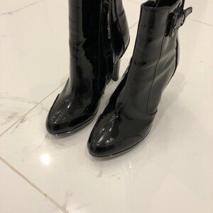 Fendi black patent leather booties with 4" heel. Very good condition - pull tab for right zipper missing.