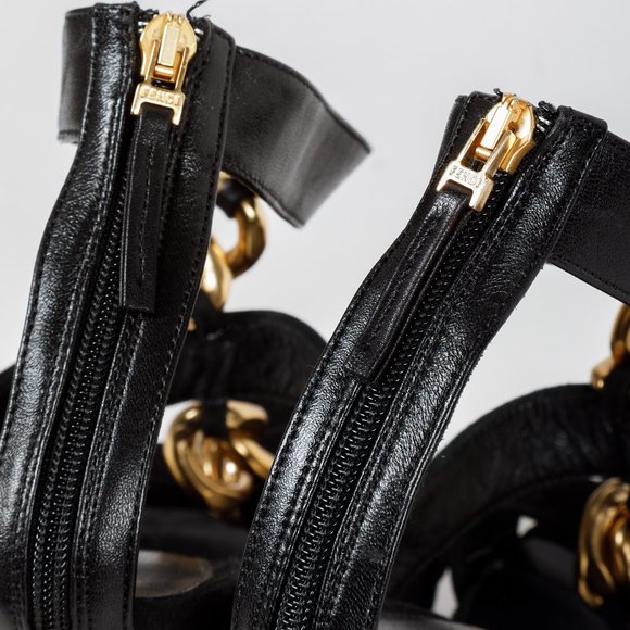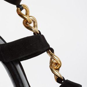 Fendi Black Suede Chain T-Strap Sandals