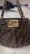 Elegant black handbag with gold zipper. Features spacious interior and signature design.