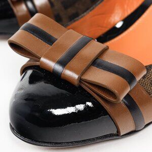 Fendi Brown Black Zucca Canvas Leather Bow Cap Toe Pumps