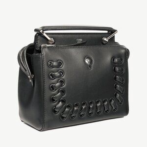 Fendi Dotcom Whipstitch Black Leather Satchel