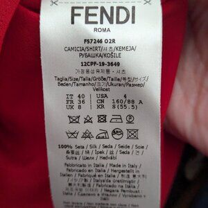 Fendi Embroidered button down shirt in red silk crepe de chine - Size 40 (US size 4) - In like new condition, freshly dry cleaned!