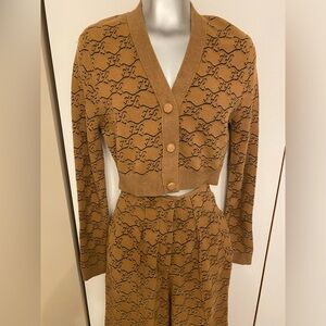 Mustard-brown color, signature FF Karligraphy motif, knitted construction. This set is in near-perfect condition with no signs of damage or use, was dry cleaned.