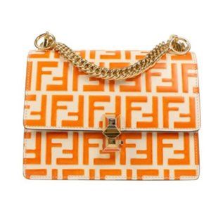 Fendi Kan I White/Orange Ff Chain Strap Small White Leather Shoulder Bag