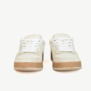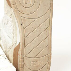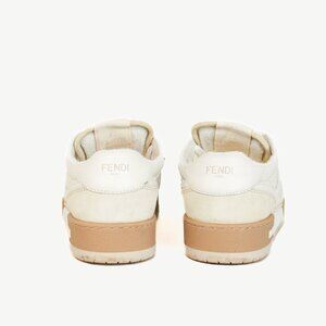 The Match sneakers from Fendi are crafted in a mix of White leather and beige suede, and are branded with an FF pattern sewn on the side. They feature closed rounded toes, front tonal terry laces, vintage labels on the tongues, a tonal terry collar, leather and textile lining; and a covered rubber cupsole with a beige bumper, and embossed lettering.