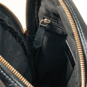 Composition: Leather, nylon, fabric lining, metal hardware.