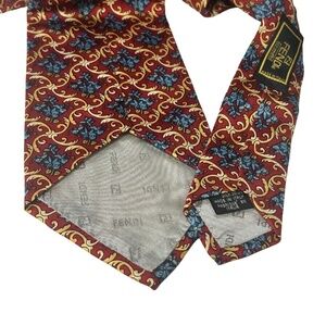 Fendi Neck Tie Italy Luxury Classic Silk Floral Gold Scroll Pattern Vintage