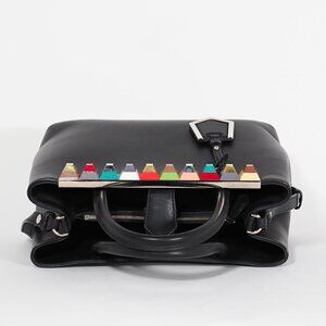 Fendi Petite 2Jours Black Leather Tote with Multicolor Dolce Studs