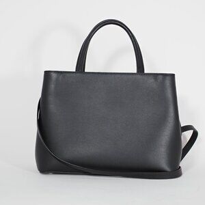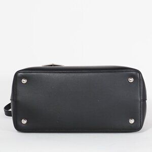 This Fendi Petite 2Jours tote is crafted from smooth black Vitello Baltico leather and detailed with bold multicolor Dolce pyramid studs along the top edge. It features dual top handles, a detachable shoulder strap, and a signature metal logo tag. The structured silhouette and neutral base make it both practical and eye-catching. Light surface wear; overall in excellent pre-owned condition.