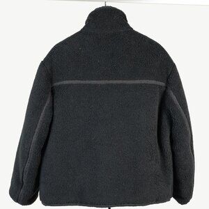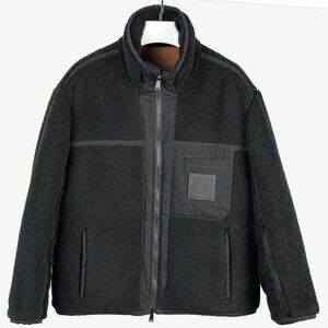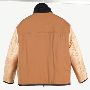 Circa 2021, this reversible jacket from Fendi is crafted in a black wool and silk-blend fleece on one side, and a mix of brown wool and tan nylon on the other. It features long sleeves, a high neck, a front zip closure with two pulls, two chest welt pockets with an embroidered logo patch on the black side, and four side pockets altogether.