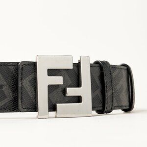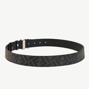 Fendi Reversible FF Black Leather & Monogram Canvas Logo-Buckle Belt
