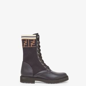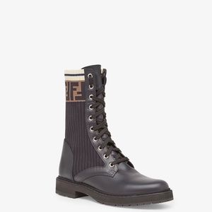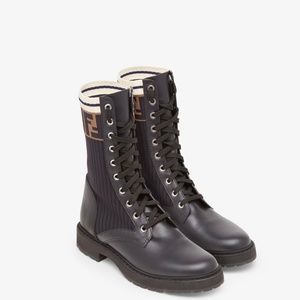 Black leather biker boots with a stretch fabric - worn 4 times- like new
