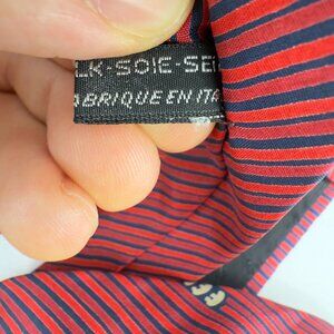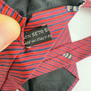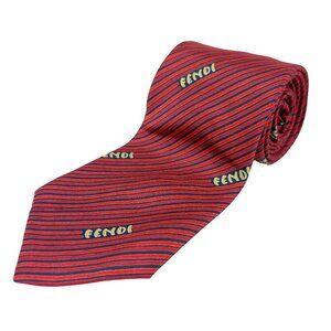 Fendi Roma Vintage Made in Italy Silk Red & Navy Stripe Logo Tie 55.5” x 3”