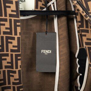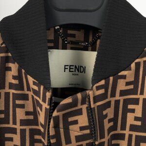 Fendi SS/19 "Mud & Dark Brown" FF-Motif Jersey Oversized Bomber Jacket