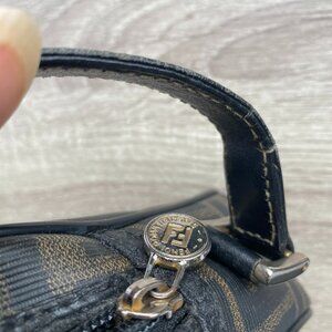 100% Authentic Iconic Fendi Vintage Zucca FF Logo S.A.S. Crossbody Classic Black & Brown Monogram Bag. Made in Italy, hardware is faded gold tone, durable coated canvas, leather trim/accents, front exterior zipper pocket, interior zip pocket, main bag & pockets with leather lining, every piece of hardware is stamped Fendi, front leather FF Fendi Roma Italy applique, adjustable strap. Inside main bag around top panel only leather is peeling off, otherwise main bag & pockets are in excellent condition, no wear to outside bag except top piping on sides of zipper peeling, small split on strap all as pictured, Bag is highly functional and still in great condition for its age, many more years of life left in her. Measures approx 6" tall x 10" Wide x 2.5" deep.