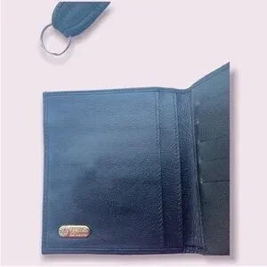 Condition - Buyer should expect to find typical signs of age & prior use ie) wallet is leather lined & inside paper money slot it’s a bit tacky to the touch. Keychain unsnaps & is leather backed & a little sticky - some of the serial code area leather has peeled in a couple spots etc.