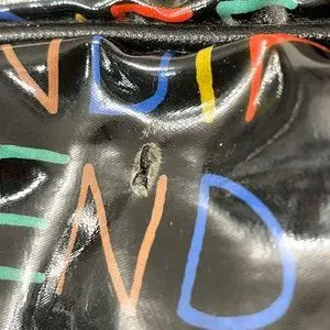 Condition: Fair, presents very well overall but there is visible wear to handles, fuzziness in inside pocket, small hole in the PVC coating at back of bag (please see all photos)
