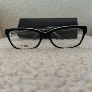Excellent condition - New without Tags Stylish Fendi glasses with a classic rectangular frame. Comes with case and cloth.