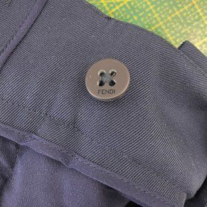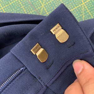 Smarten up your looks with tailoring. These blue wool trousers from Fendi are the perfect in-between choice for smart and casual occasions alike. The cropped fit means they'll showcase your great taste in footwear. Fendi trousers in navy featuring straight leg design, concealed zipper with clasp fastener, cut-out detail at back waistband, two pocket styling, piping detail at front and back, and tonal stitching detail throughout