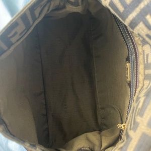Some tarnishing on the hardware, leather strap shows wear from which hole was used the most. Two drops of stains on the inside of the bag.