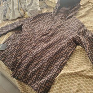 Italian-made from technical fabric, this reversible hooded jacket from Fendi sports an all-over FF logo print in brown, has large zipped pockets, and is all-black on the reverse side.