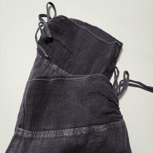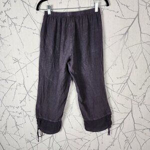 Fenini Purple 100% Linen Elastic Waist Mesh Hem Tie Crop Pants
