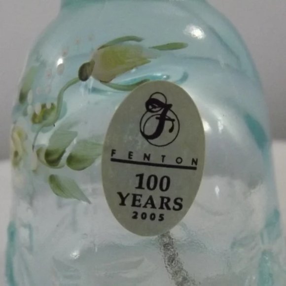 Fenton Glass Blue Hand-painted Bell with Flowers, 100 Years!
