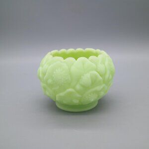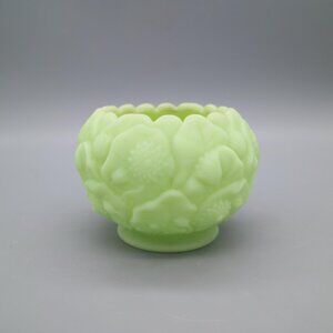 Fenton Lime Green Satin Green Custard Water Lily Flower Bowl