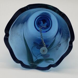 Fenton Signed Hand Painted Blue Floral Art Glass Bell