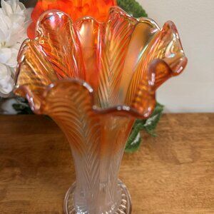 Fenton Swung Vase Marigold Carnival Glass Clear Base Vintage Art Glass