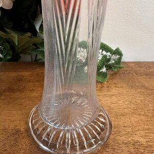 Swung vases like this were stretched by hand while still hot, giving each one a slightly different shape—no two are identical! The marigold iridescence is rich and fiery, and the clear base gives it a unique contrast rarely found in traditional carnival glass.