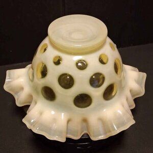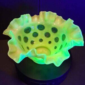 Fenton Uranium Glass Topaz Opalescent Coin Dot Ruffled Bowl