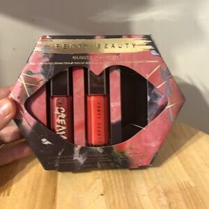 Fenty Beauty by Rihanna Glossy Posse VII Full-Size Gloss Bomb Duo new in box. I’ve bought this limited edition Gloss Bomb lip set a couple of months ago but I only used the Heat Universal Lip Luminizer in Hot Cherry. I’m selling the rest of the set, which contains one 0.30 oz/ 9 mL Gloss Bomb Universal Lip Luminizer in Dragon Mami and one 0.30 oz/ 9 mL Gloss Bomb Cream Color Drip Lip Cream in Fenty Glow. I think that the Dragon Mami shade was exclusive for this set and it isn’t available anymore. This item comes from a smoke free, pets friendly home. Recycled bags/box used when possible. Please, let me know if you'd like any additional info. Thanks for watching!