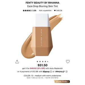 Brand new Fenty Beauty Eaze Drop Blurring Skin Tint. Shade 13, medium with warm undertones. 1.08 fl oz / 32 mL. Never used.