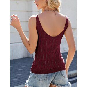 Feoya Women Red Scoop Neck Knitted Cami Layering Sleeveless Pointelle Sweater