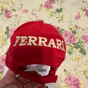 Bold red Ferrari cap featuring stylish embroidery. Perfect for fans.