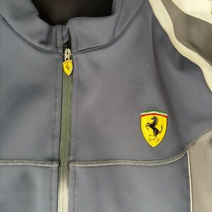 Ferrari Menβs performance jacket size XL- Limited Efition. Has flaws on the inside, small hole on the inside mesh pocket, right side. And a white mark inside back. And outside back white mark. Functionally great condition. 2 pockets on the outside & 2 pockets on the inside.