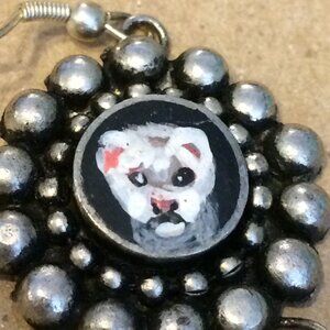 Ferret Earrings Handpainted Danglers Silvertone Metal Long Polecat Pet Artisan