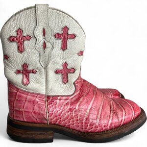 Ferrini Pink White Crosses Leather Distressed Western Cowgirl Cowboy Boots 8.5