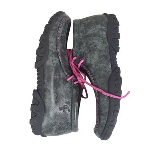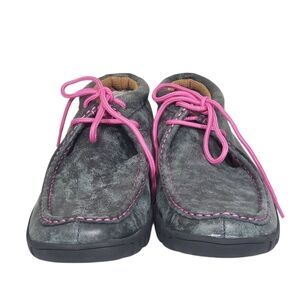 FEATURES: Lace-up closure, high top, flex outsole and cushioned insole, round toe, fun pink laces and stitching.