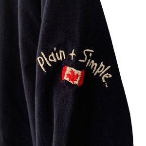 '67 embroidery on front, and 'Plain + Simple ', Canadian Flag on right sleeve