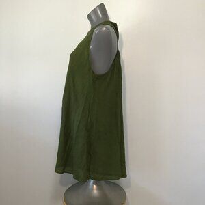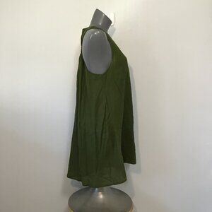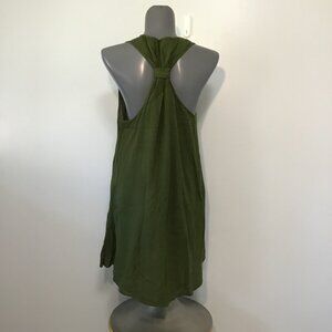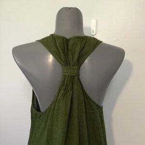 Cute, sleeveless, lightweight dress with a relaxed fit, featuring a racerback style and a slightly flared skirt in a vibrant olive green. Fully lined.