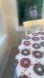 FESTIVE LARGE tablecloth with vibrant red/green wreaths with a white background. Perfect for holiday & special gatherings. Tablecloth is easy wash & wear. No fabric tags but feels like a cotton/polyester blend. Size