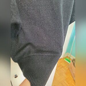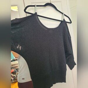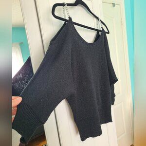 Festive Holiday Party Black Glitter Knit Cold Shoulder Silver Chain Strap Sweater Top