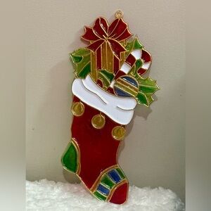 Add a touch of holiday cheer with this vibrant stocking ornament, featuring classic red, green, and gold colors. Perfect for enhancing your festive decor.