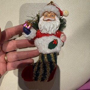 Brighten your home with this set of 6 colorful ceramic holiday Christmas tree ornaments or decorations. Each piece features vibrant red, green, and blue hues, perfect for adding a festive touch to your decor. Last 2 have a broken arm but barely noticeable.