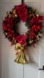 Brighten your home with this stunning holiday wreath featuring vibrant red and gold accents. Perfect for adding a festive touch to any door or wall.