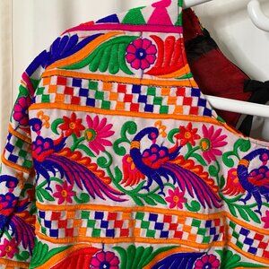 Purchased to wear at a party for an Indian wedding, this top and skirt are in excellent condition. Fits approximately a size 4 to 8 . The skirt needs to be pinned to hold on the body as its a pull up skirt with no elastic. I f you have any questions, please don't hesitate to contact me.